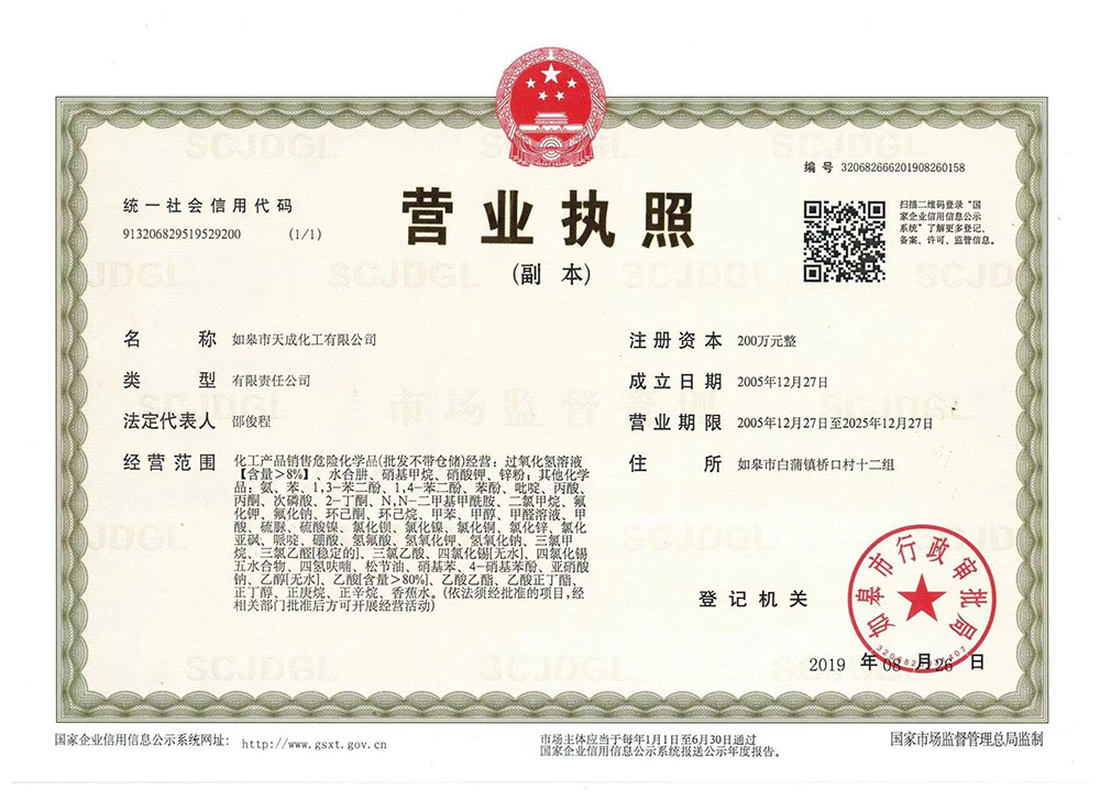 ? 如皋市天成化工有限公司創(chuàng)建于1996年。公司地處于美麗富饒的長江三角洲,座落在古鎮(zhèn)林梓,通揚運河河畔。南瀕長江、西臨204國道,距南通港、飛機(jī)場30公里,立體交通發(fā)達(dá)。公司經(jīng)營管理規(guī)范,技術(shù)力量雄厚,擁有一批高、中級專業(yè)技術(shù)人才。